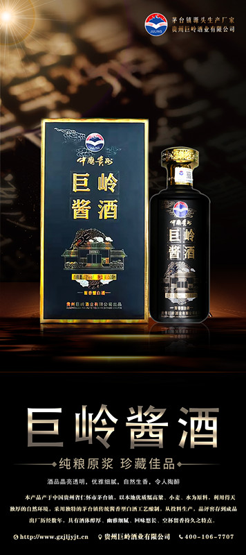 贵州巨岭酒业有限公司,座落于闻名世界的古镇,国酒之乡“茅台镇”。与“国酒茅台”共享得天独厚的气候、土壤、水源、以及微生物群等自然资源;《巨岭酒业》老作坊前身“巨岭烧坊”,经过多年的传承,秉承先辈们代代相传的古法酿造工艺,历经几代人的延续和酿酒发展,奠定了《巨岭酒业》发展的坚实基础。 作为贵州茅台镇本土规模企业,《巨岭酒业》拥有传统发酵窖池200余口,年产优质酱香白酒近2600多吨,储酒能力12000多吨;并配有3条现代化包装生产线;公司现有职工300多名,有酿酒师15人,技术人员22人,本科以上学历管理人员12人,大专学历工作人员78人,是茅台古镇酱酒传承的白酒知名企业。 《巨岭酒业》励精图治与精益求精的发展理念,已成长为行业认可、社会公认的“规模酿酒企业”,酒业协会副会长单位”和“爱心企业”。 公司现在拥有:《巨岭酱酒》,《岭台》,《玉岭烧坊》,《酒缘》《情满壶》等上百个品牌产品,公司注重品牌发展,以《巨岭酱酒》为品牌核心,以个性化定制和尊贵封藏为营销模式,制定出“一核两柱”的销售模式。《巨岭酱酒》作为品牌主体,做扩展市场的排头先锋,全国布局,点线结合,网状布局,包括《巨岭》系列产品.... |